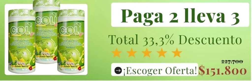 Coli Plus es un suplemento natural a base de fibras y extractos de frutas y plantas como linaza, pitaya, té verde, alcachofa y chía, diseñado para mejorar la digestión, regular el tránsito intestinal y aliviar el estreñimiento.